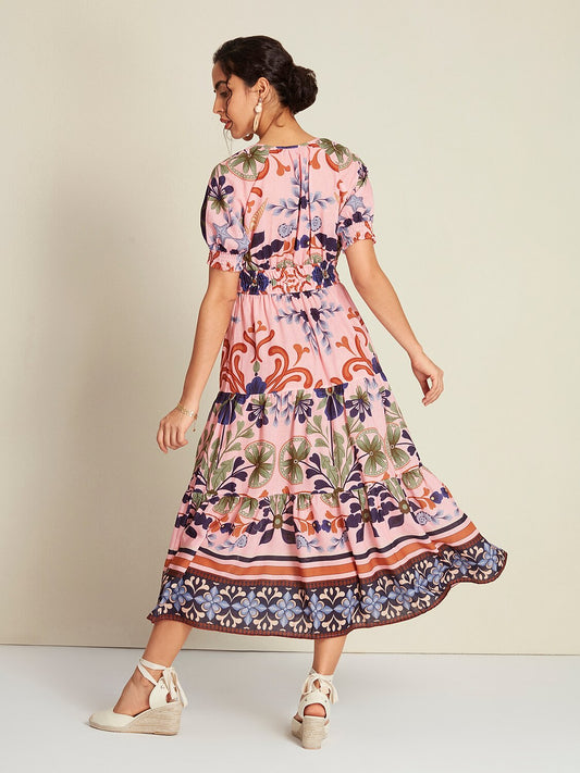 Midi Dress Midi Dress Yellow less Floral Belted Printing High Pattern Dress