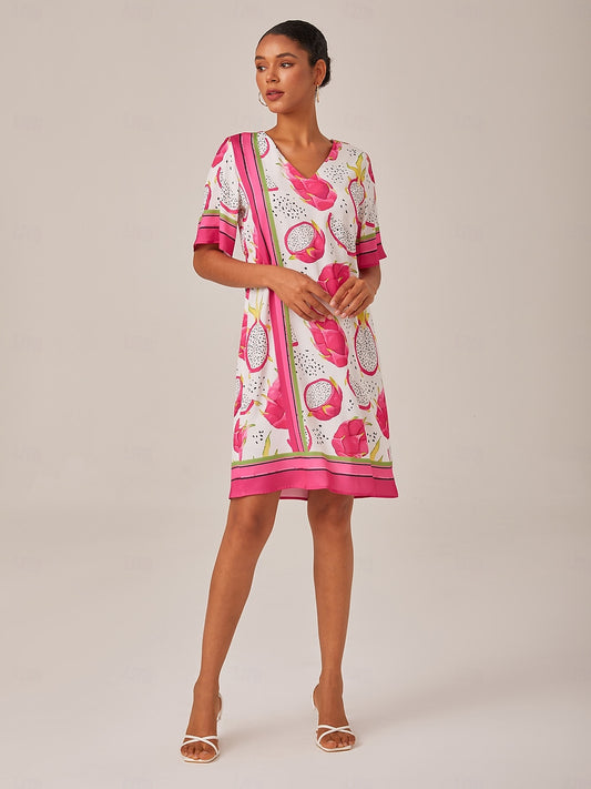 Satin Mini Dress Floral Print Straight Fit Slimming Elastic Back Dress