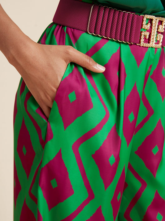 Satin Geometric Print Relaxed Elasticity Straight Pants
