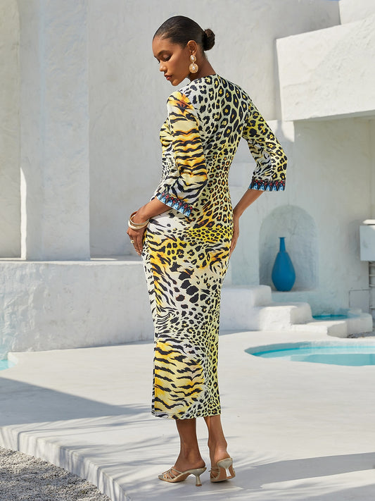 Vintage Leopard Jewelry Flowy Chiffon Two Way Cover Up
