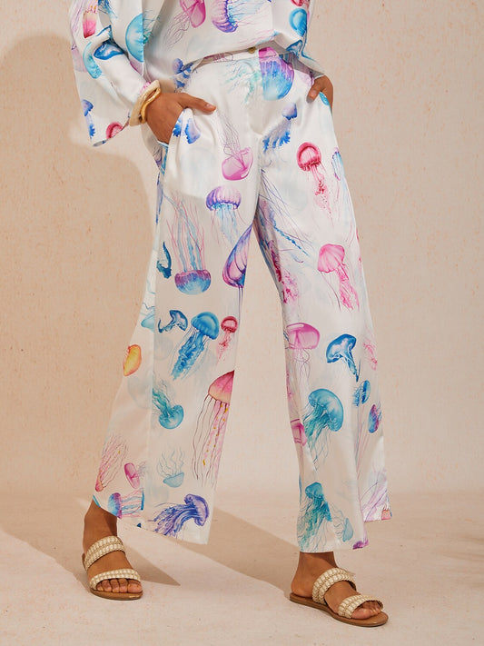 Ethereal Jellyfish Drift Silky Satin Straight Leg Pants