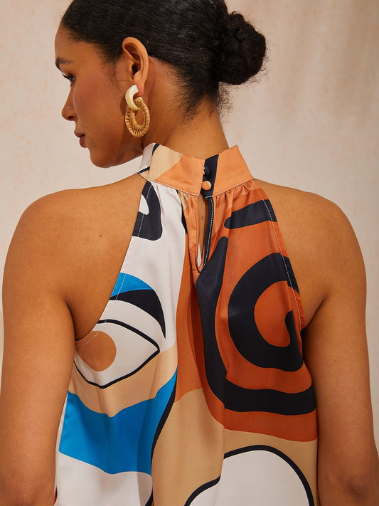 Abstract Art Silky Satin Sleeveless Top