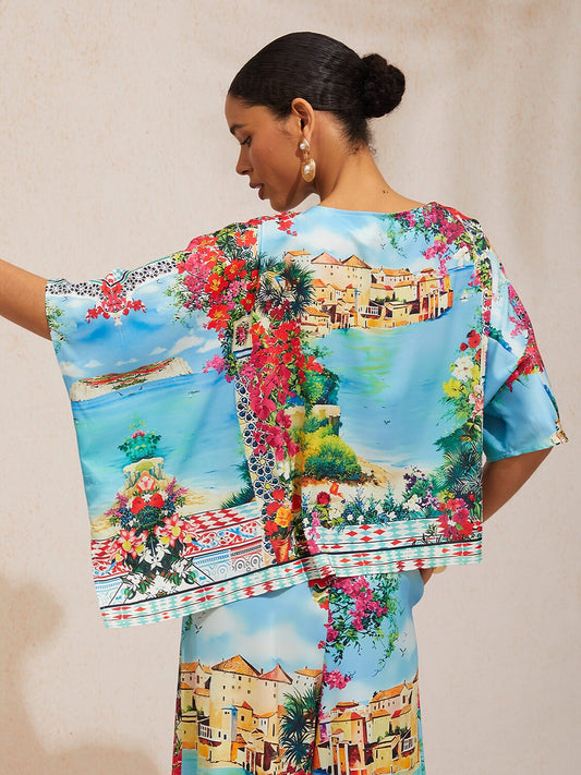 Mallorca Blossom Silky Satin Dolman Sleeve Top