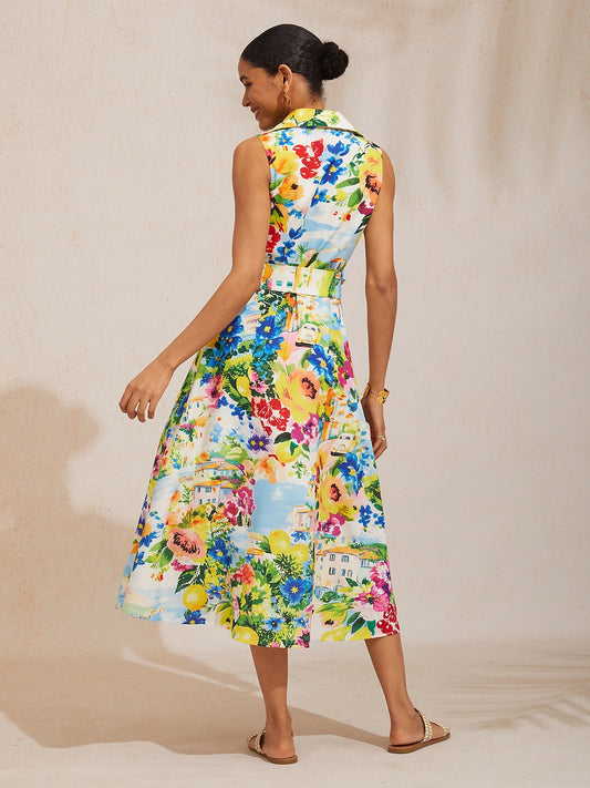 Holiday Citrus Garden Airy Linen Look Maxi Dress