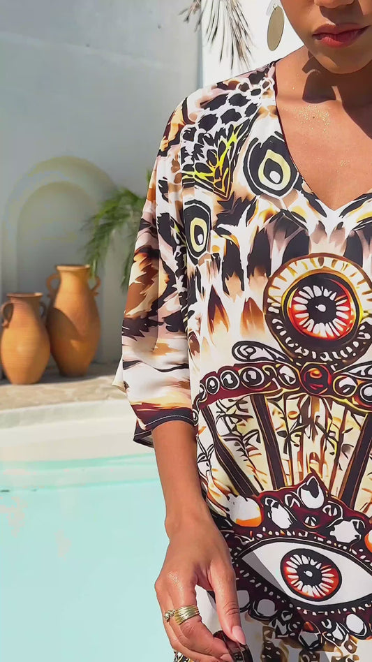 Vacation Leopard Motif Dolman Sleeve Loose Fit Chiffon Maxi Dress