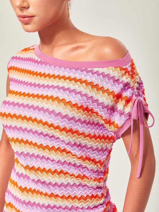 Elegant Rainbow Wave Stretch Knit Mini Dress