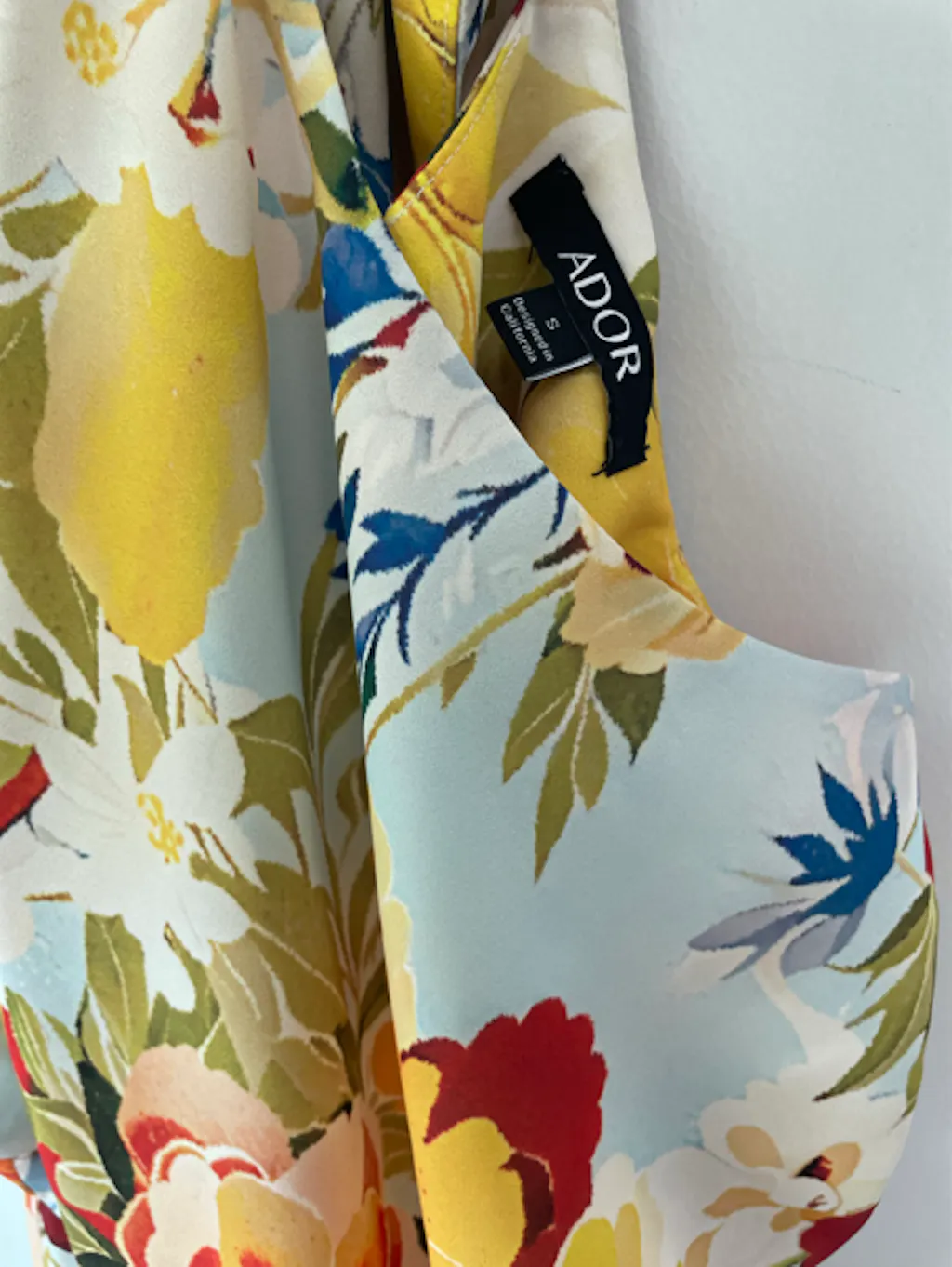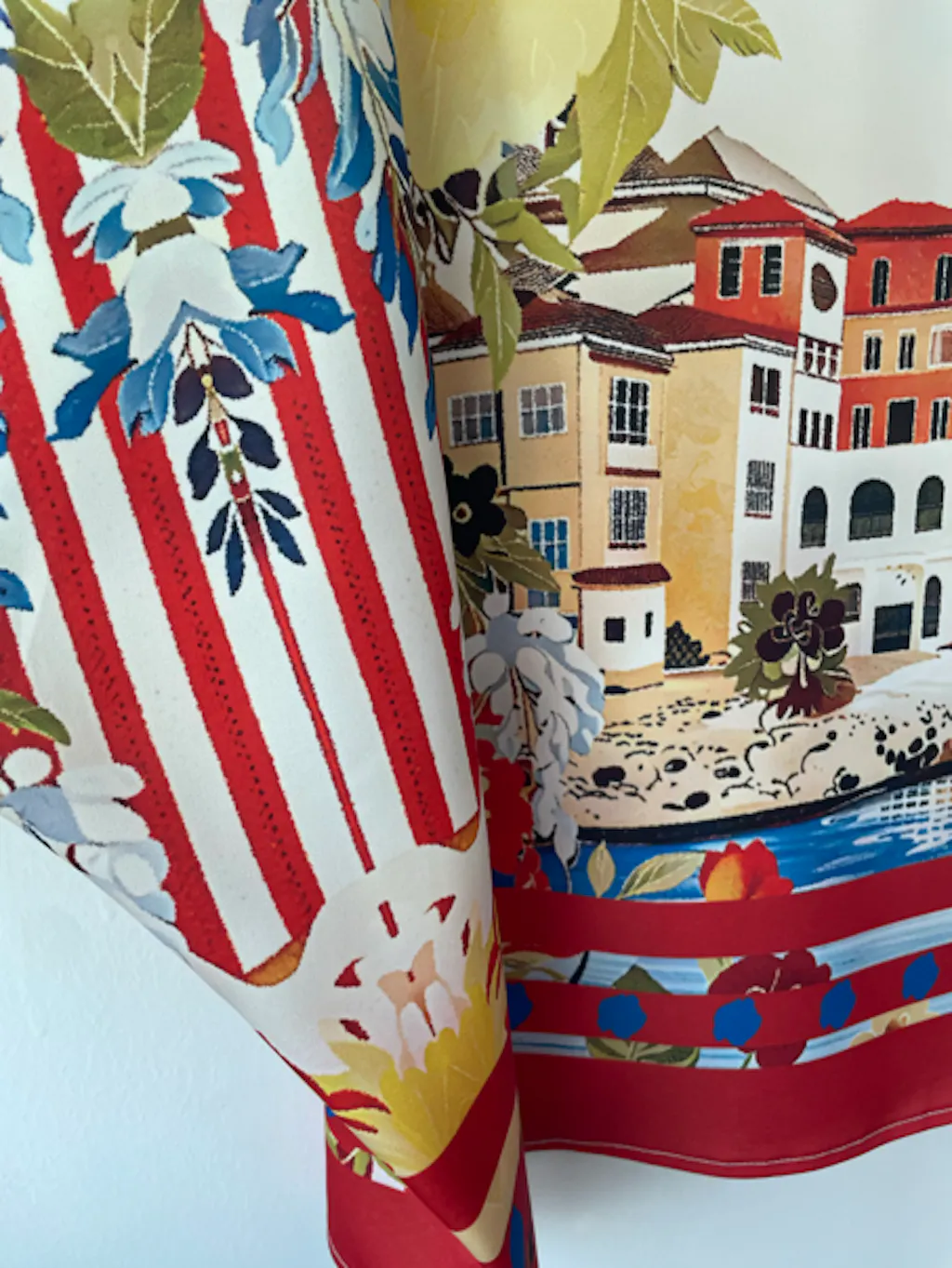 Holiday Citrus Garden Silky Satin Straight Shirt Dress