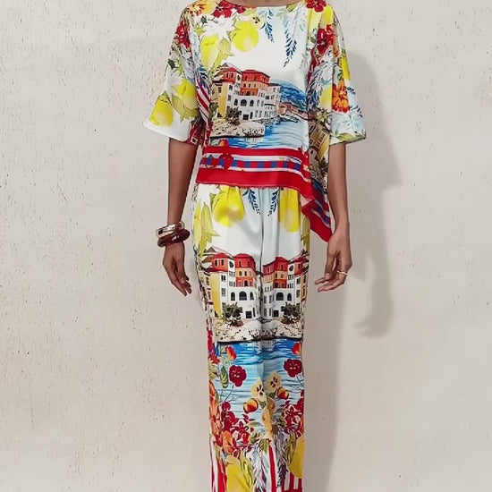 Santorini Summer Silky Satin Dolman Sleeve Top