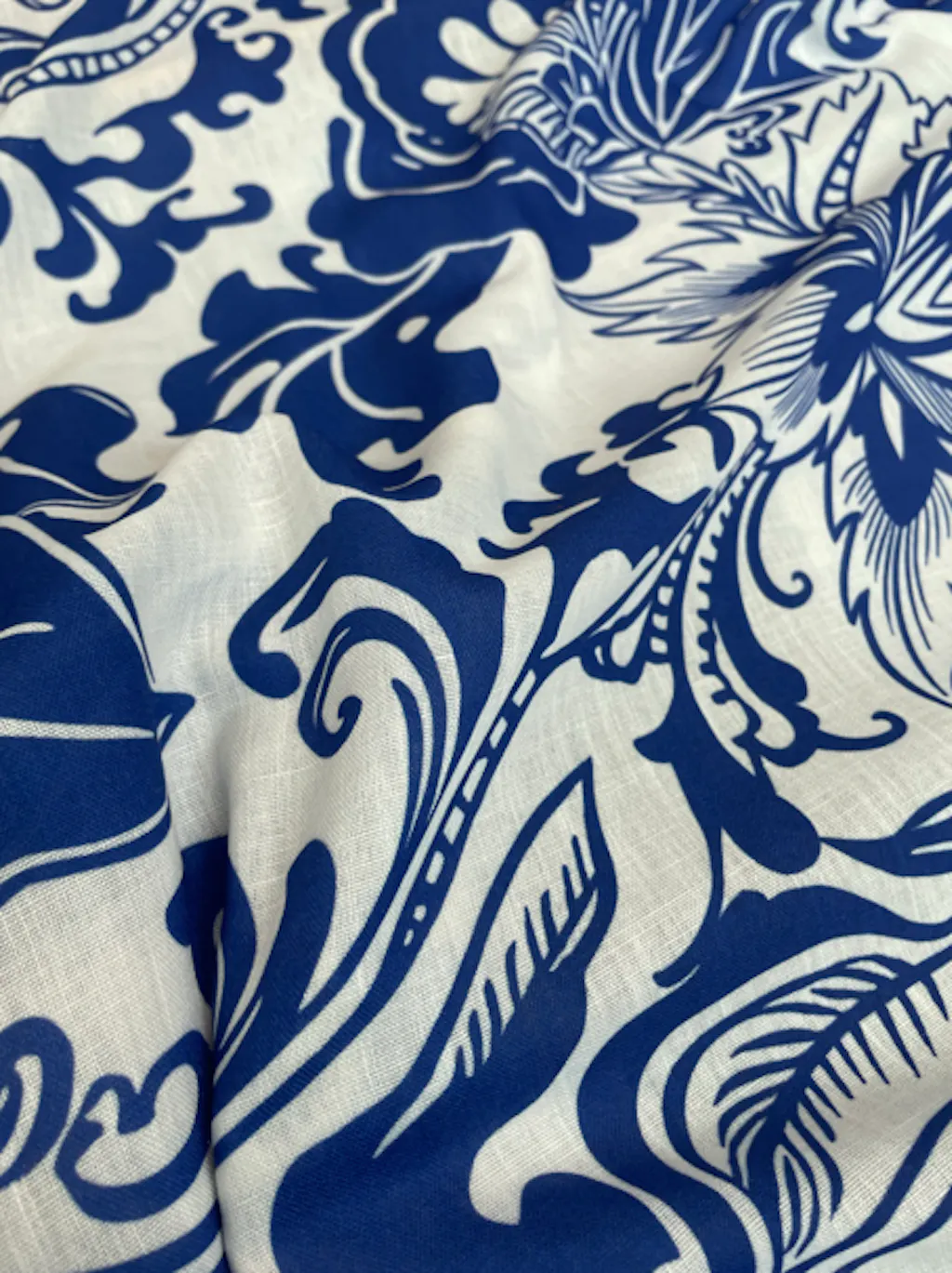 Midnight Blue Baroque Chiffon Three Quarter Sleeve Top