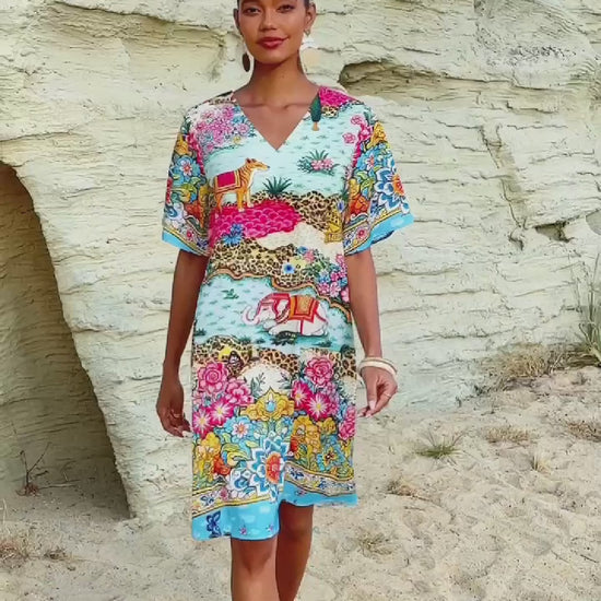 Indigo Tigress Chiffon Vacation Shirt Dress
