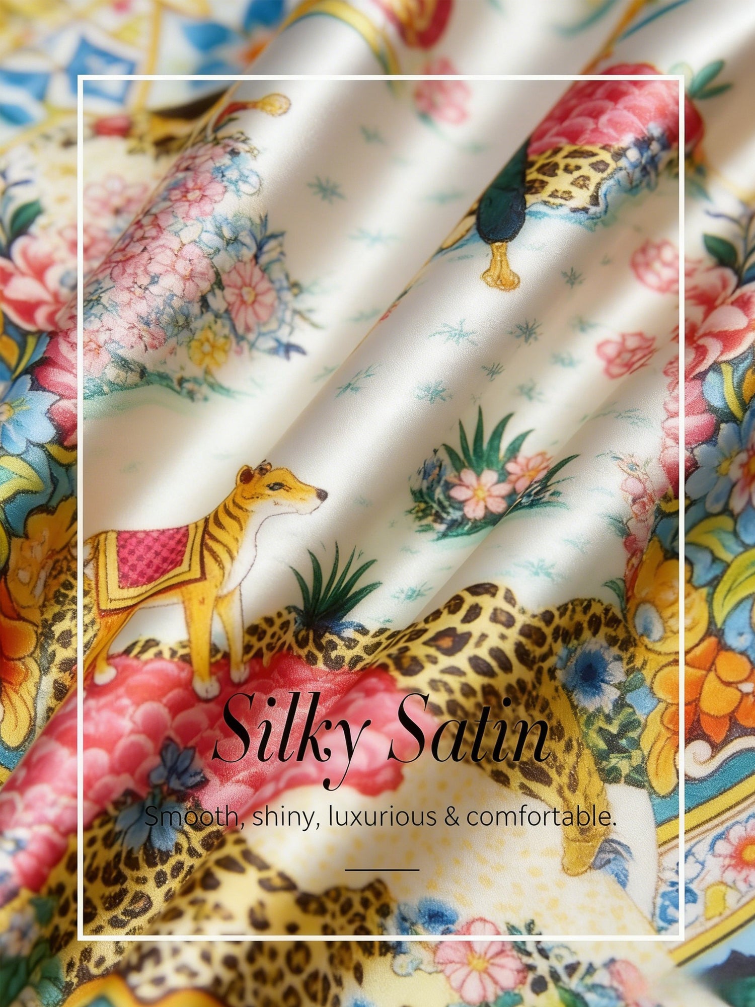 Vacation Scenic Floral Print Straight Satin Shirt Dress