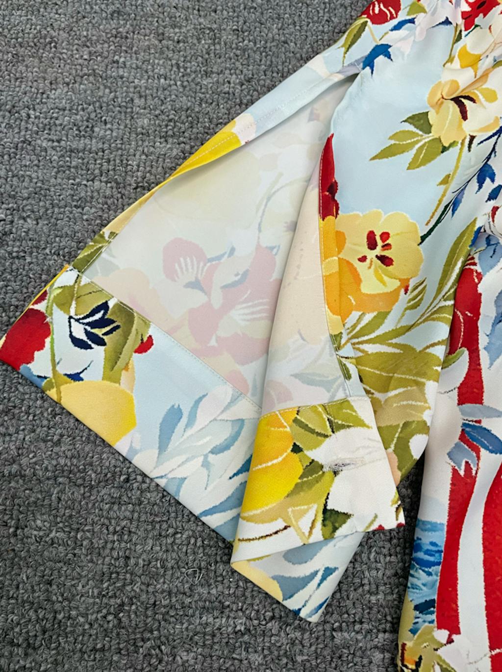 Vacation Contrast Color Artistic Floral Dolman Sleeve Satin Top