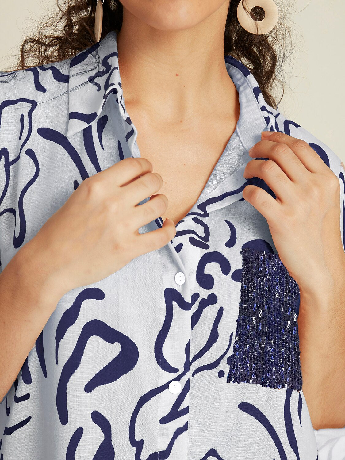 - Design : Sequin,Roll up Sleeves,Pocket