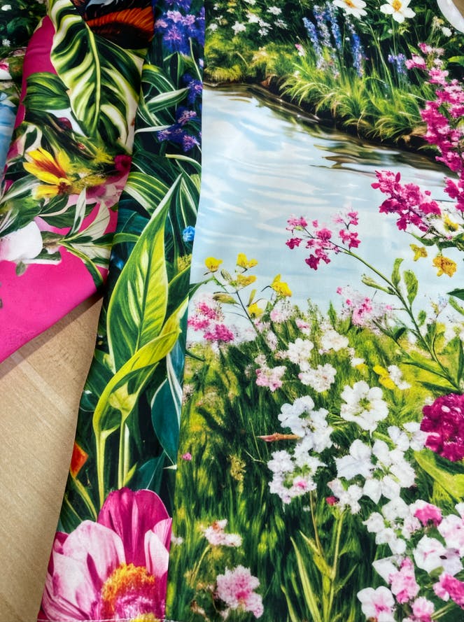 Vacation Contrast Color Artistic Floral Dolman Sleeve Satin Top