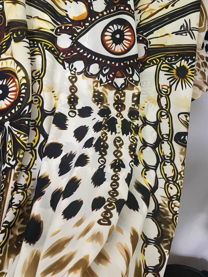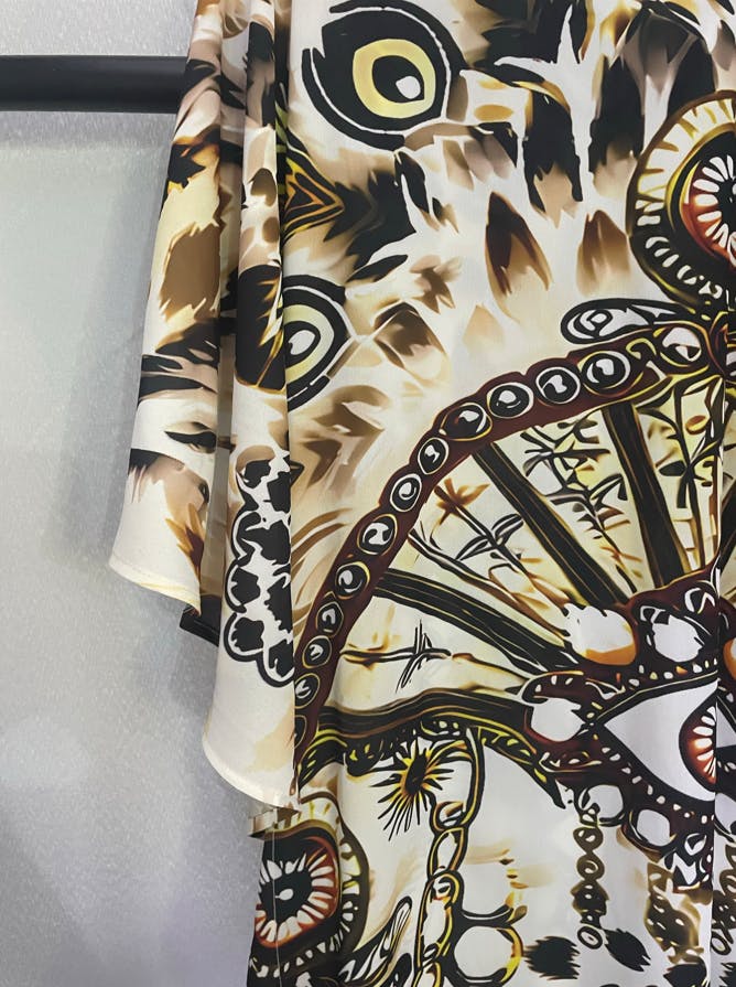 Wore this to a beach party and felt so put-together! The flowy chiffon keeps me cool in hot weather, and the bold print stands out in the best way.