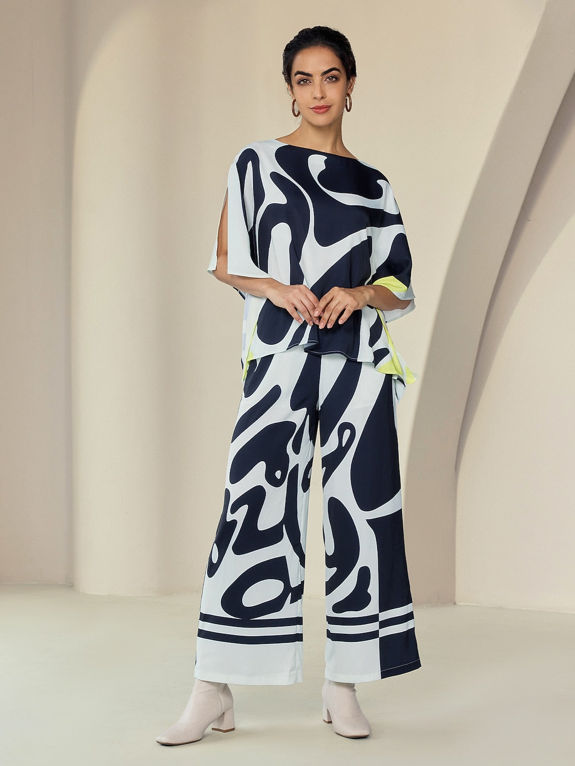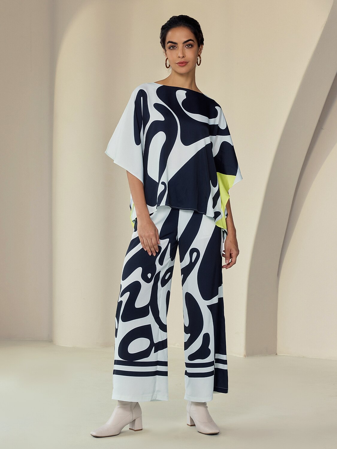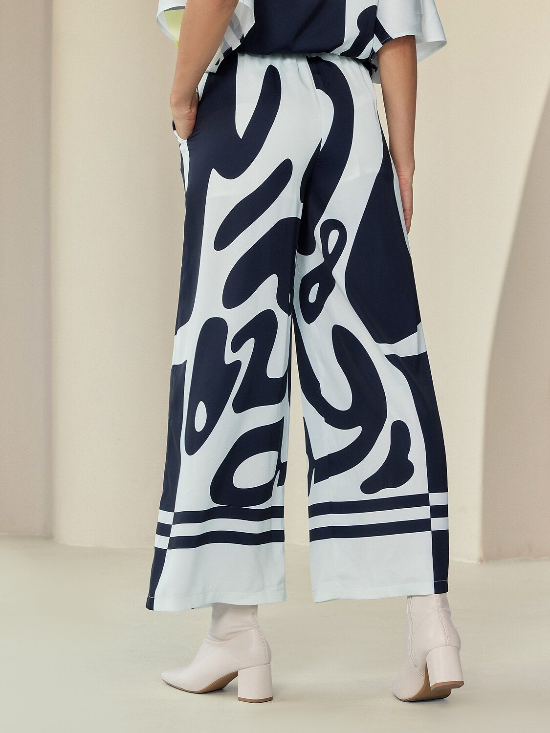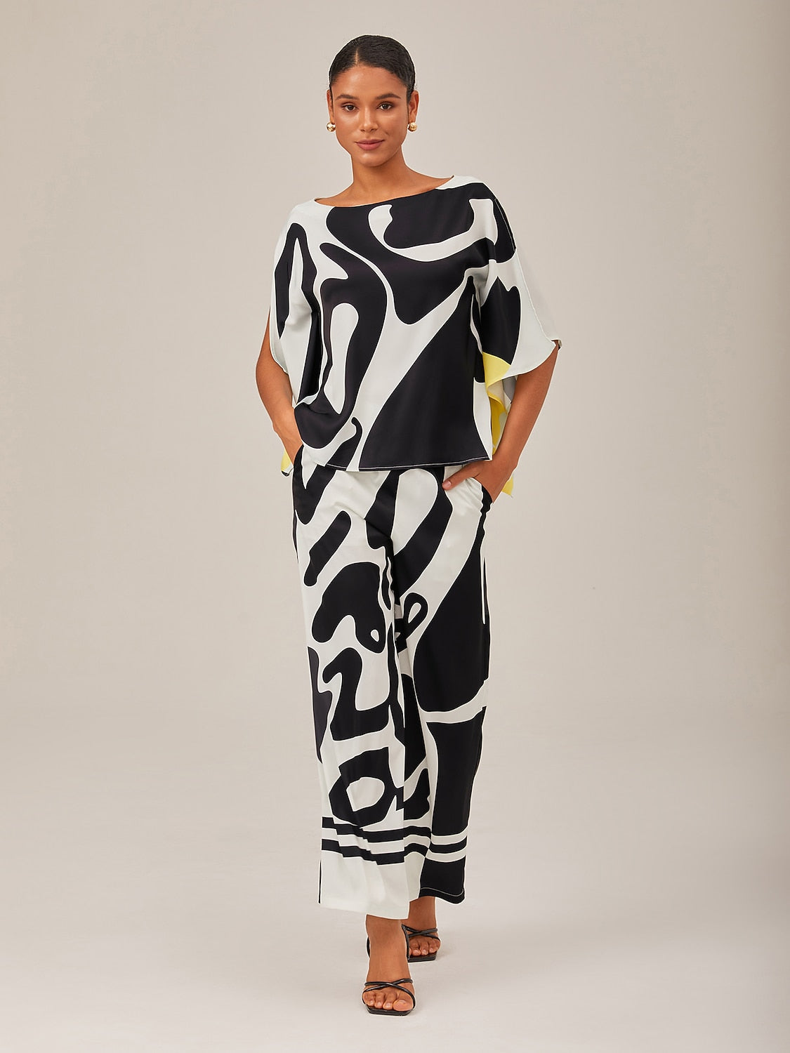 Crafted from satin with bold geometric prints, these pants feature a relaxed straight silhouette and elasticated details for comfort, delivering a vibrant, artistic look. Perfect for embracing a modern-bohemian style at resort getaways, casual gatherings, or adding a striking graphic touch to your wardrobe.