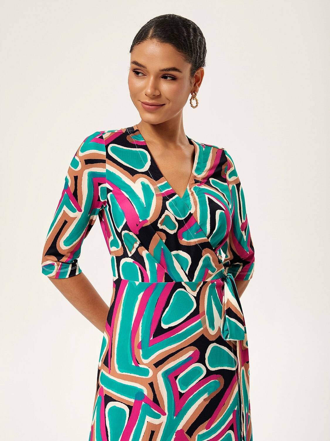 Vacation Vintage Ethnic Geometric Pattern Satin Midi Dress