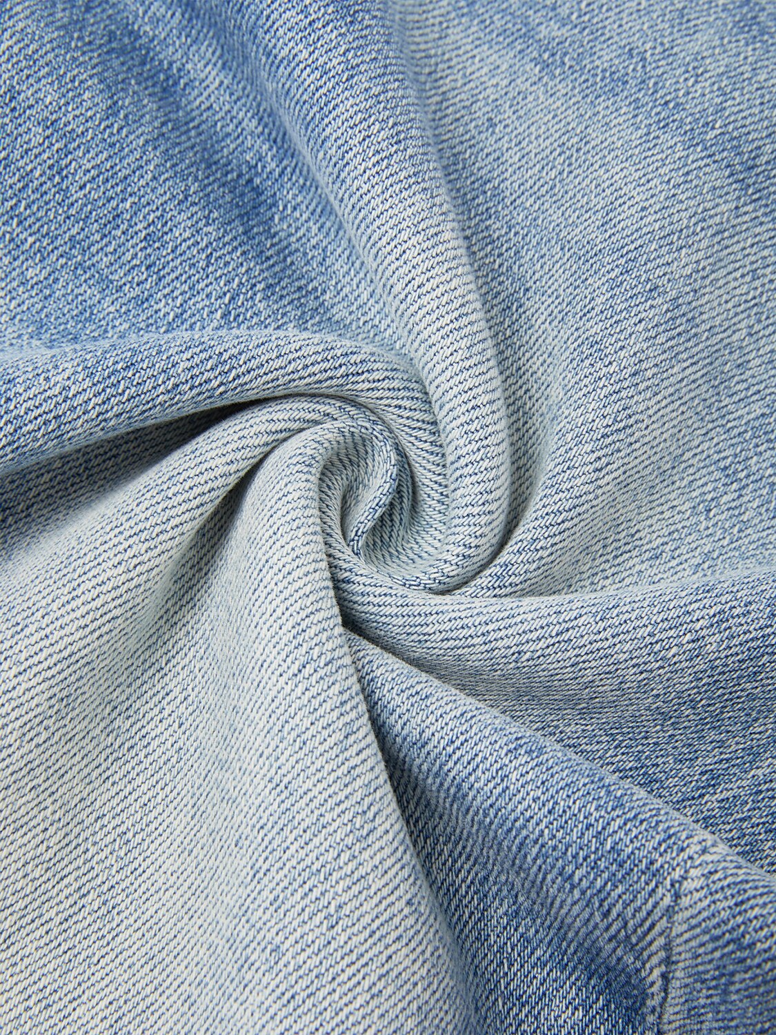 Jacket Denim Fabric Yellow Floral Pattern Turn Down Collar