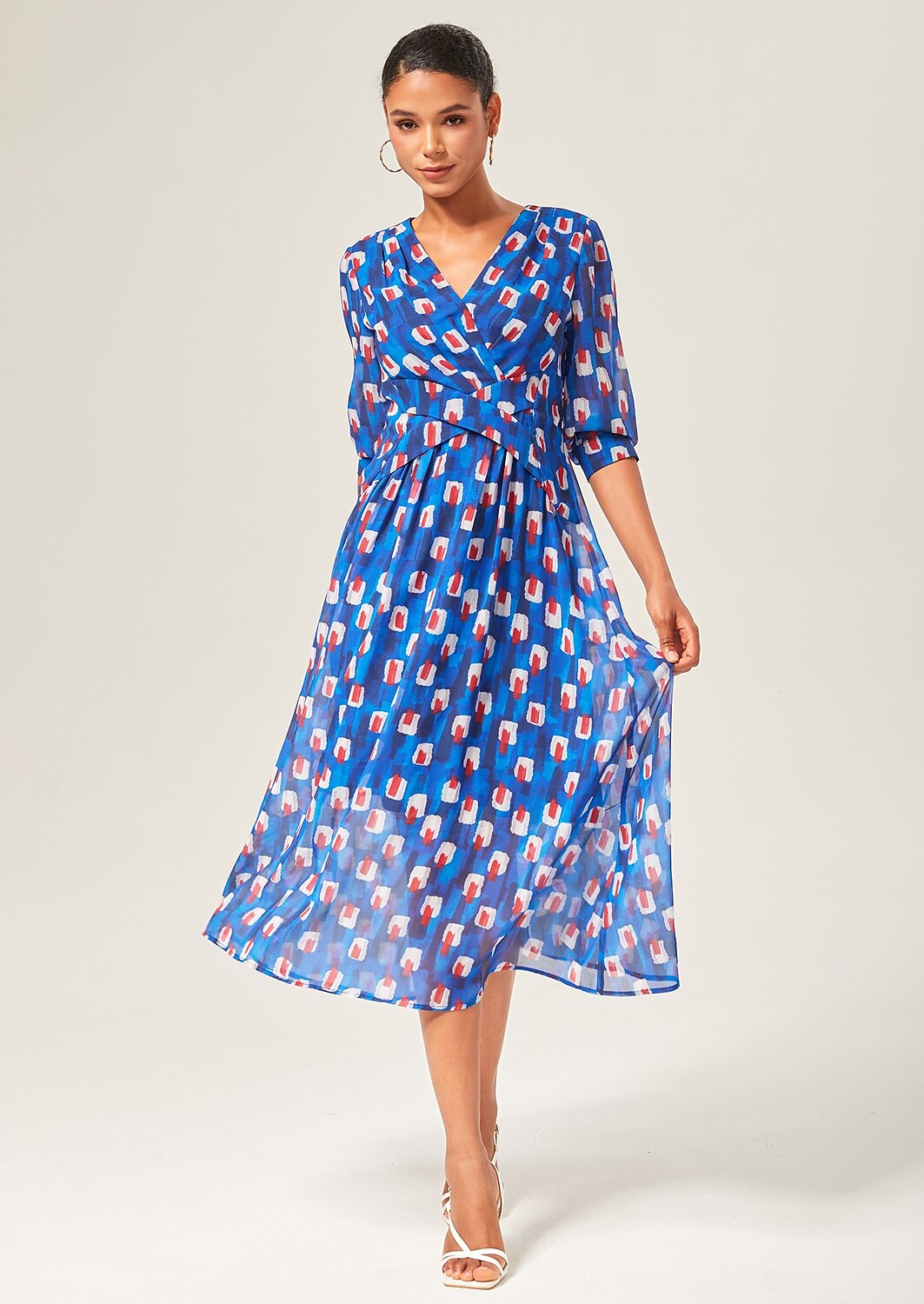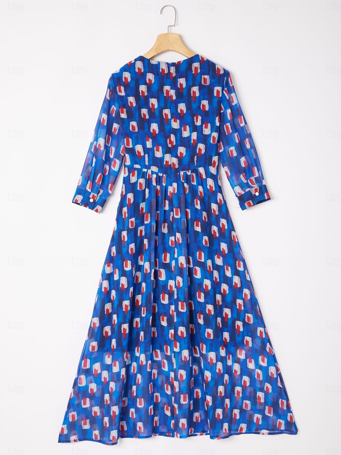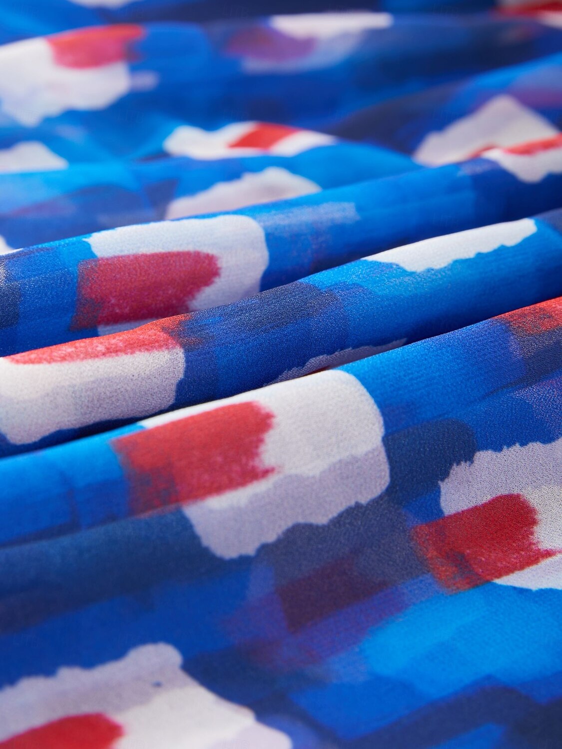 Featuring lightweight chiffon, striking geometric color-blocks and a sweeping maxi length, this dress blends boho charm with modern flair for effortless warm-weather styling.