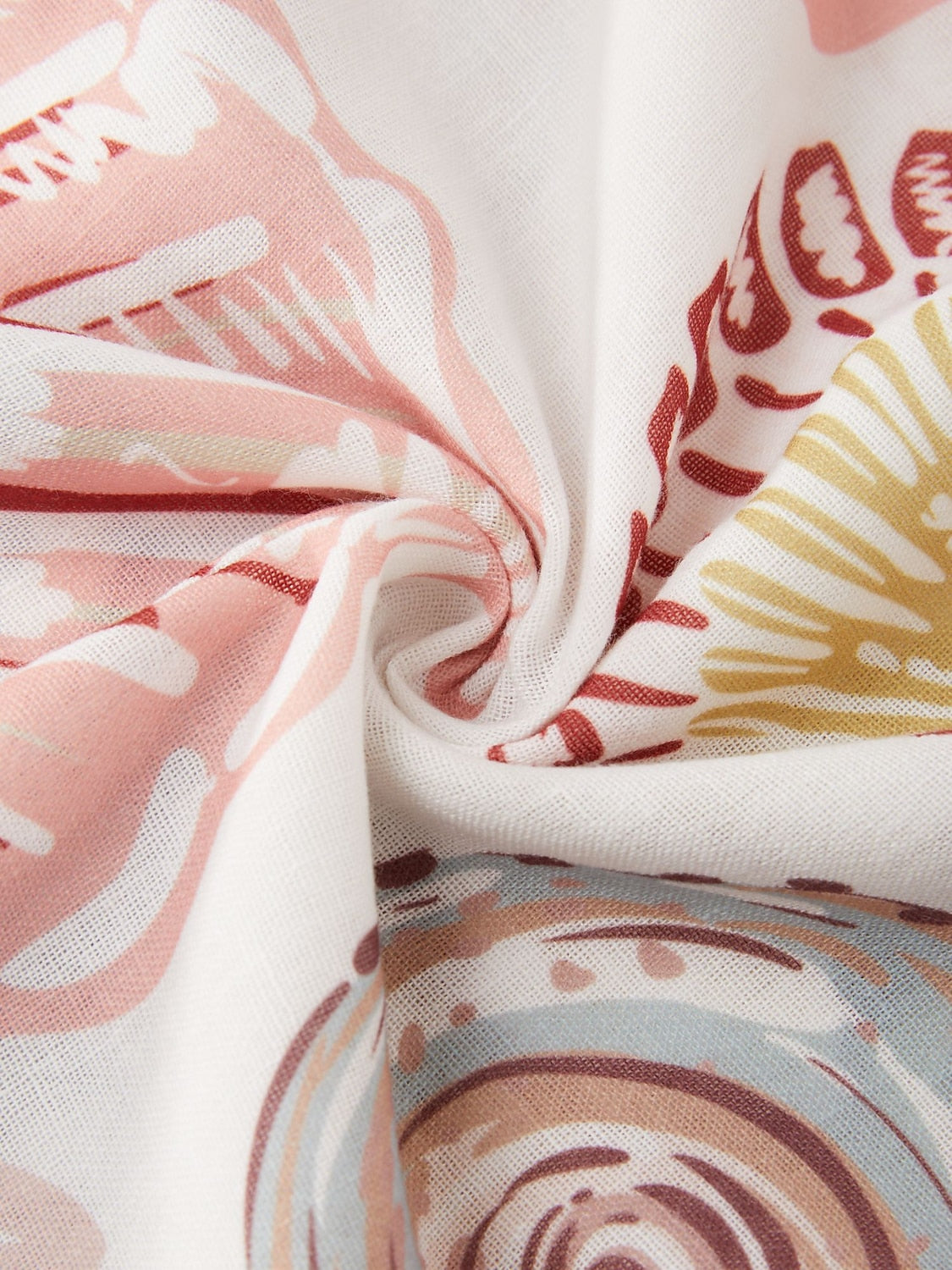 Blouse Green Paisley Floral Loose Fit Round Boat