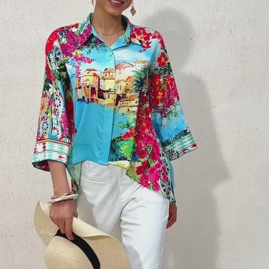 Mallorca Blossom Silky Satin Dolman Sleeve Top