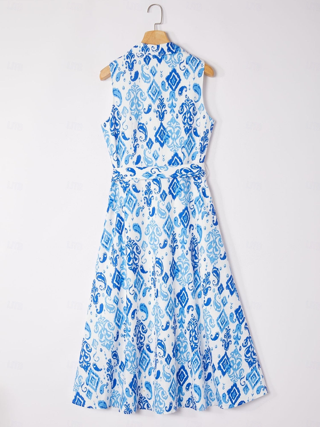 Shirt Brown Bohemian Geometric Graphic Satin Silk