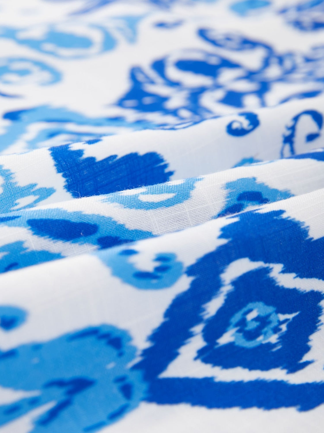 Blouse Green Paisley Floral Loose Fit Round Boat