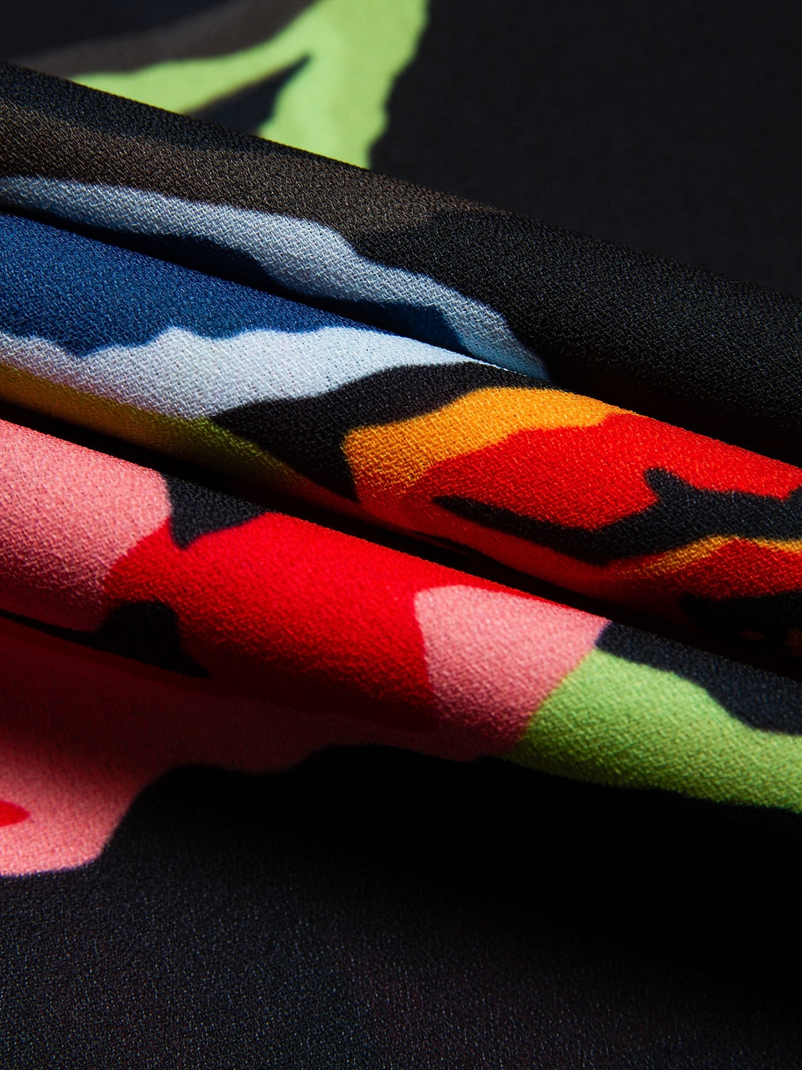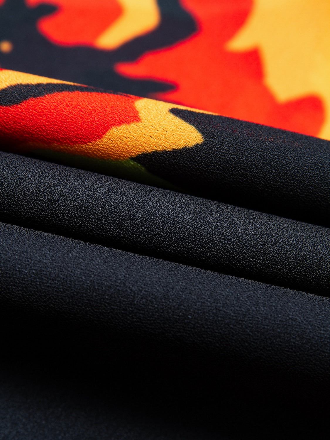 Mini Dress Shirt Collar Chiffon Black Floral Print