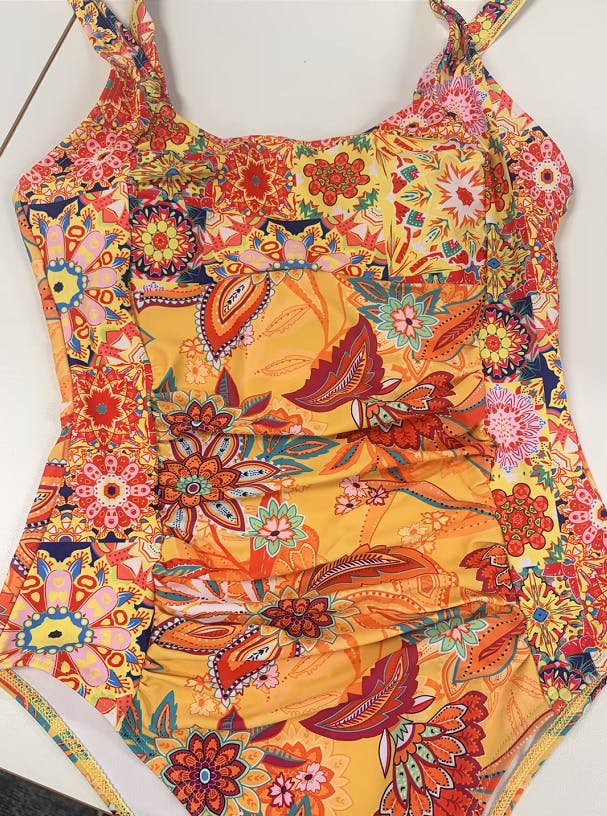 Super nice one piece floral print swimsuit. true to the picture in colors and print. Good material and good fit
