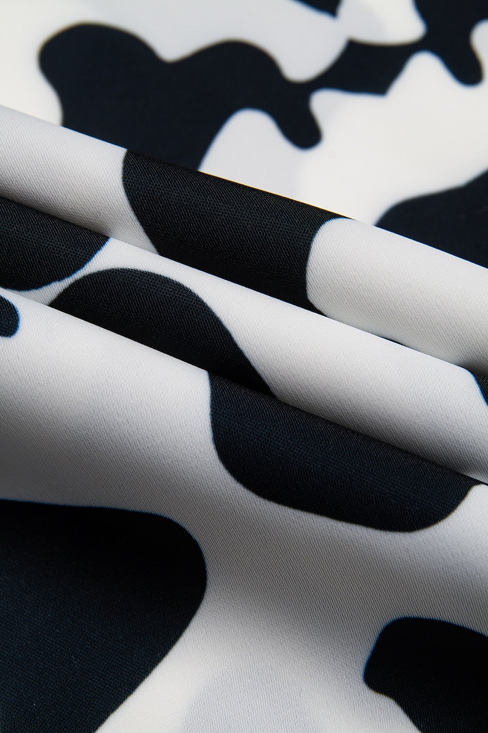 This satin dress features a bold, modern graphic print in contrasting tones, bringing effortless sophistication to any look. Crafted from smooth, glossy satin, it drapes beautifully and offers a lightweight, comfortable feel. The chic V-neckline elongates the silhouette, while the three-quarter sleeves add a refined, wearable touch. Flowing and elegant, this dress is perfect for daytime outings, weekend events, or relaxed yet polished occasions.