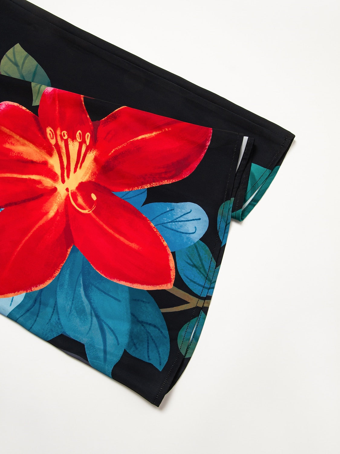 Vacation Contrast Color Artistic Floral Dolman Sleeve Satin Top