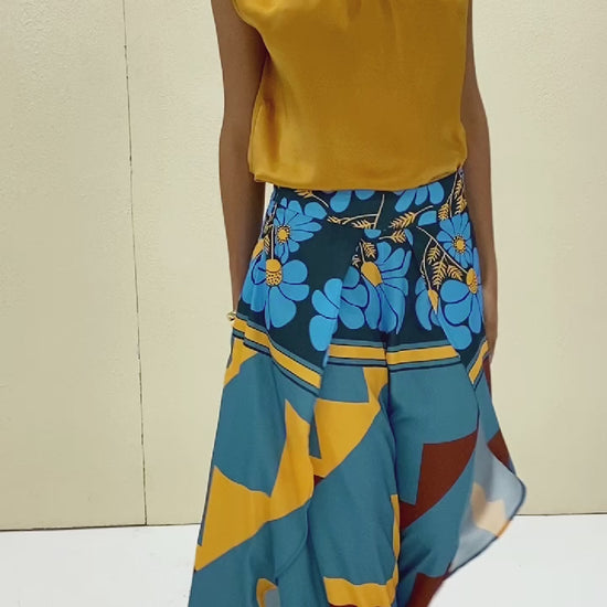 Vacation Contrast Artistic Floral Satin Straight Pants