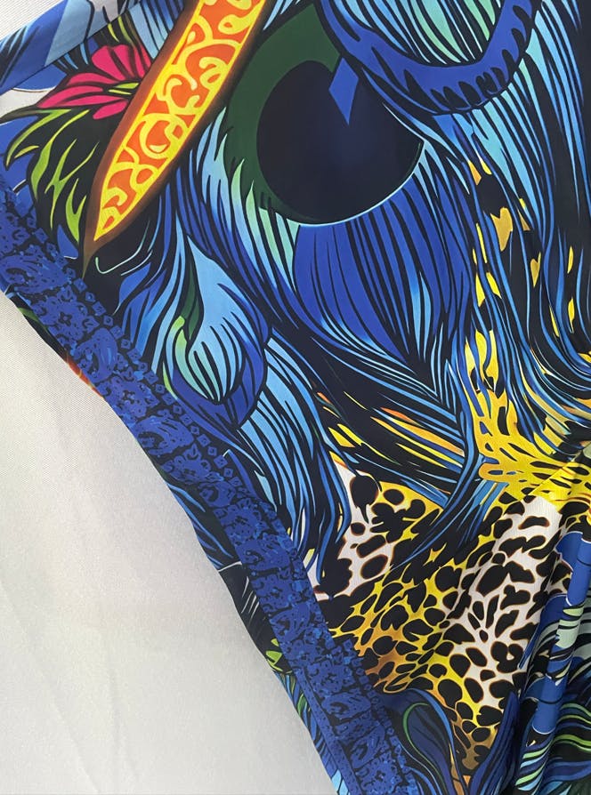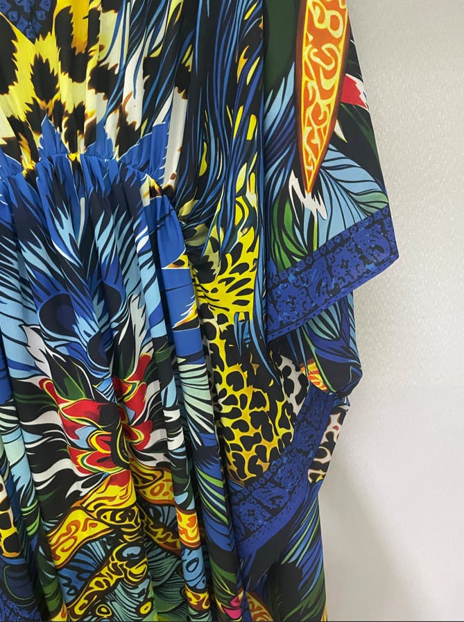 Love the breathable fabric and eye-catching print. Arrived quick—loves the drape!