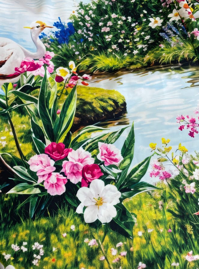 Vacation Scenic Floral Print Straight Satin Shirt Dress