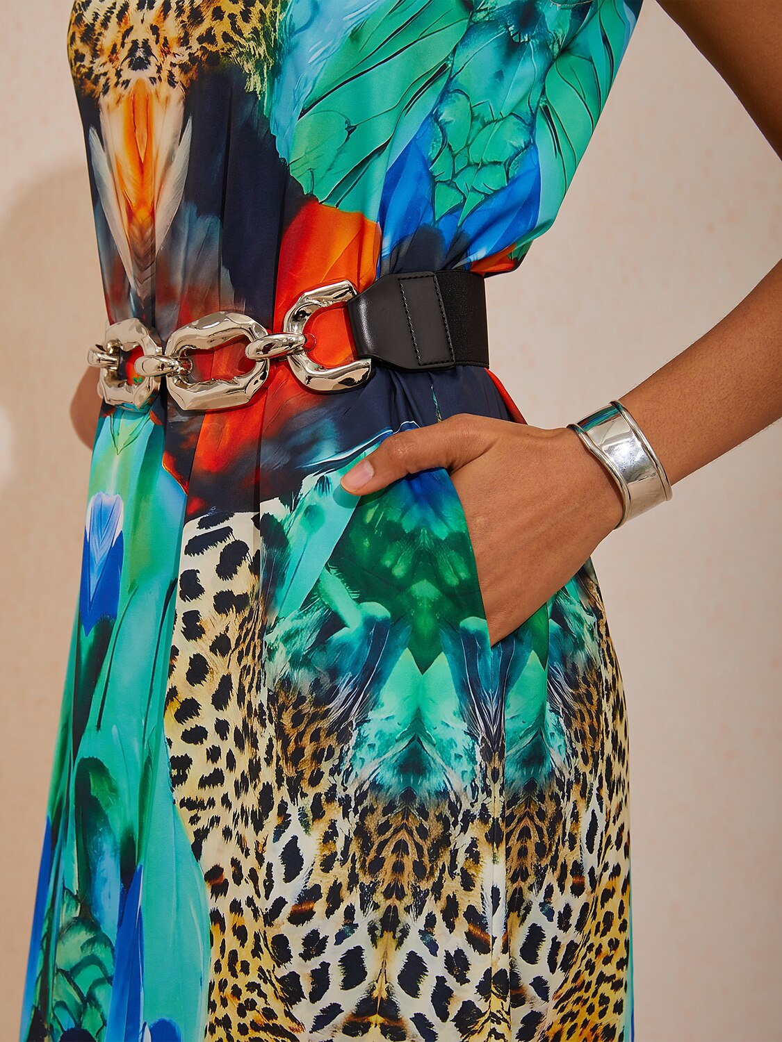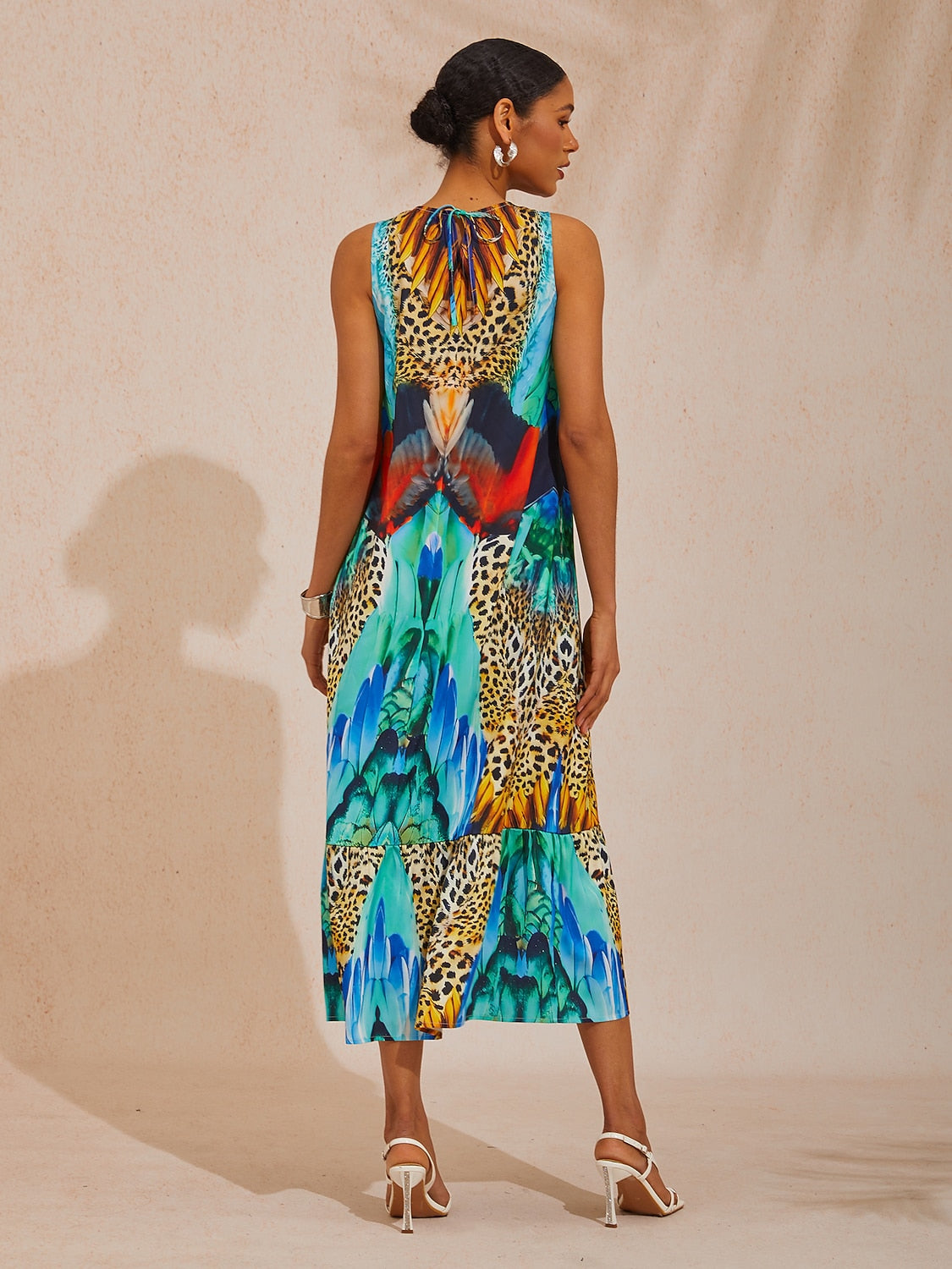 Vacation Jungle Print Sleeveless Loose Satin Maxi Dress