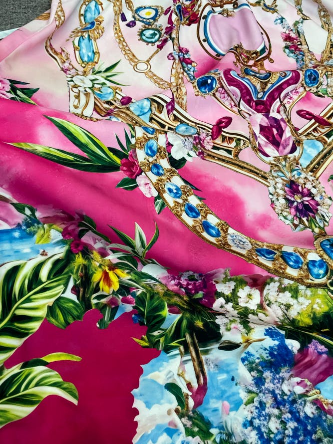 Vacation Scenic Floral Print Straight Satin Shirt Dress