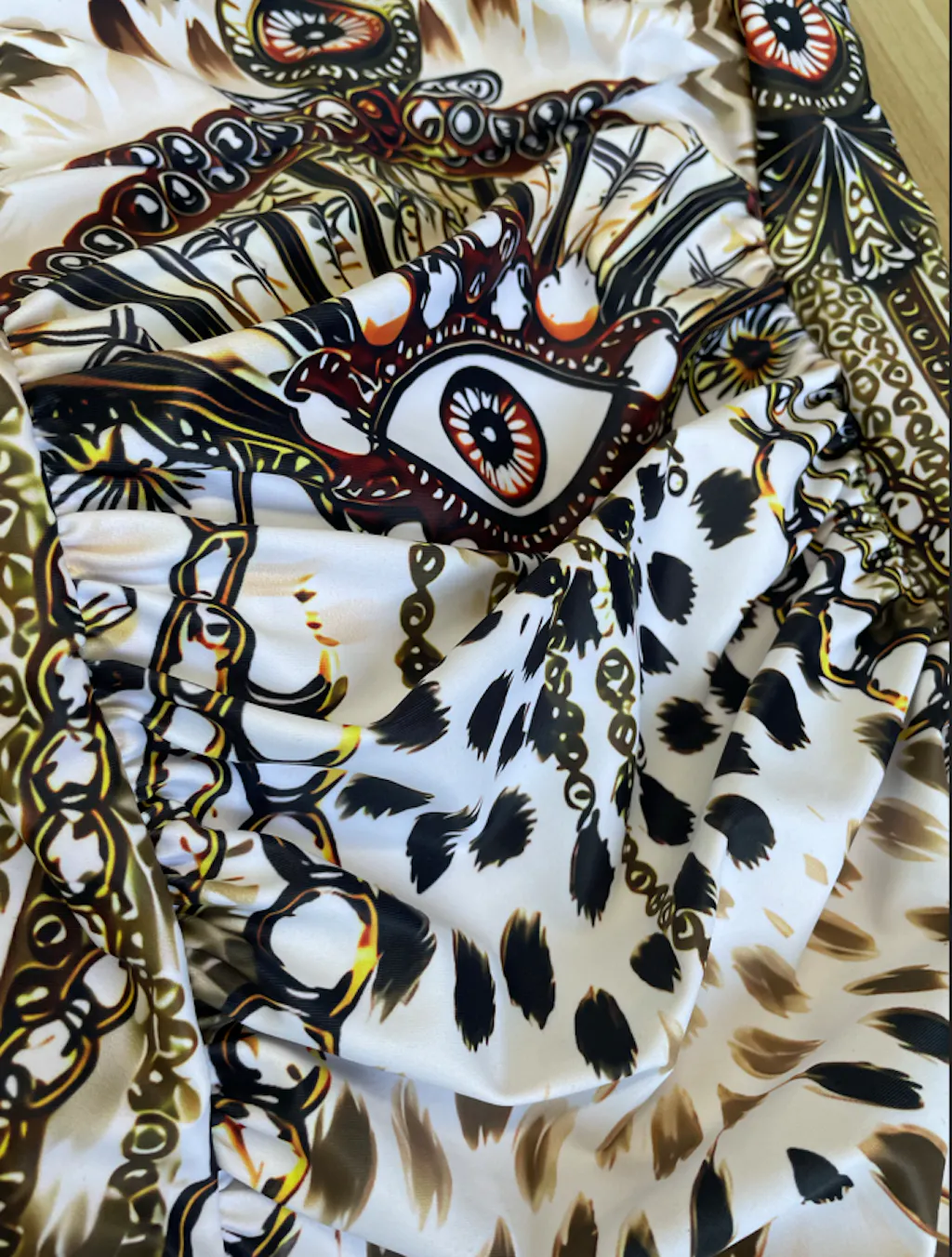 Abstract Leopard Paisley Print High Stretch Knit Maxi Dress