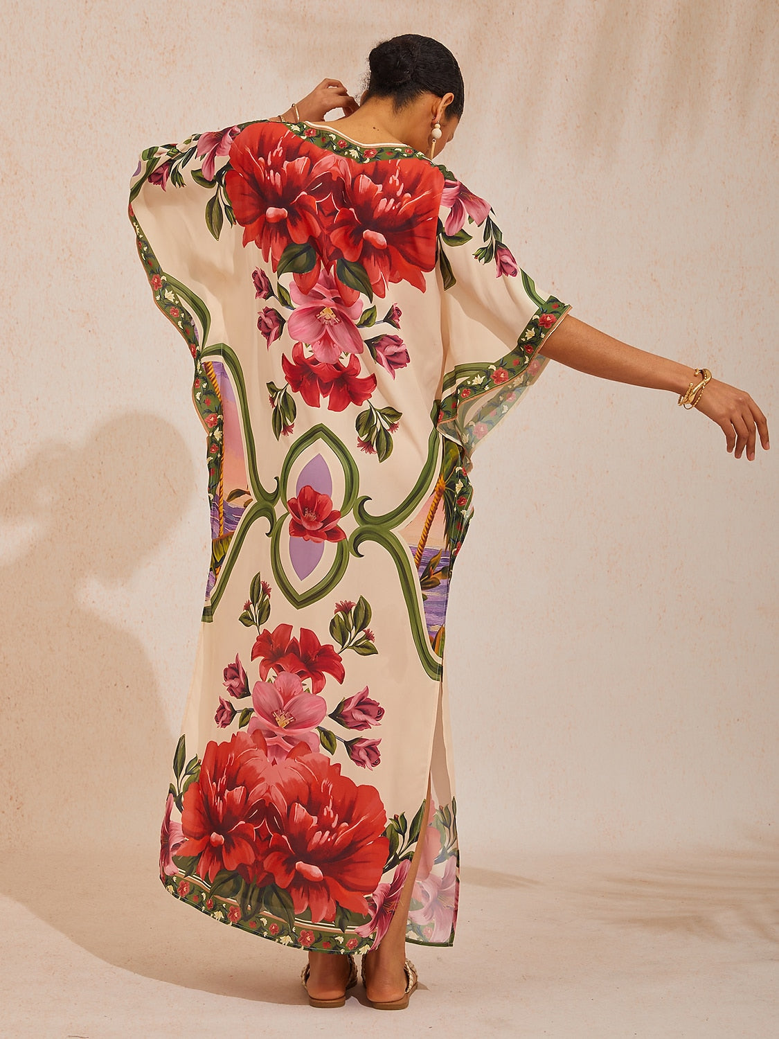 Vacation Floral Chain Print Dolman Sleeve Chiffon Maxi Dress