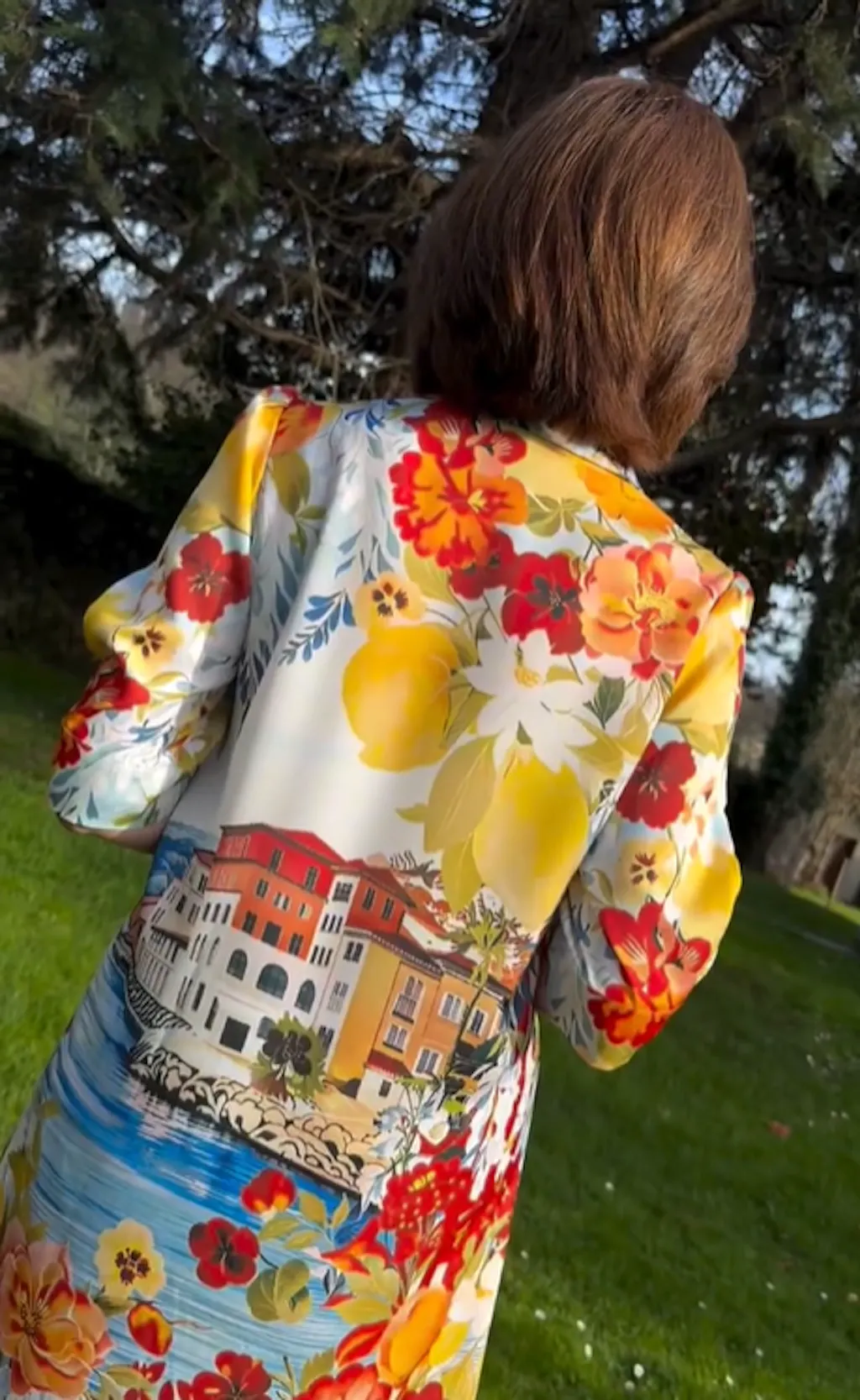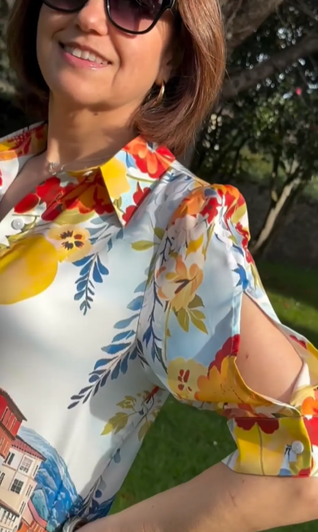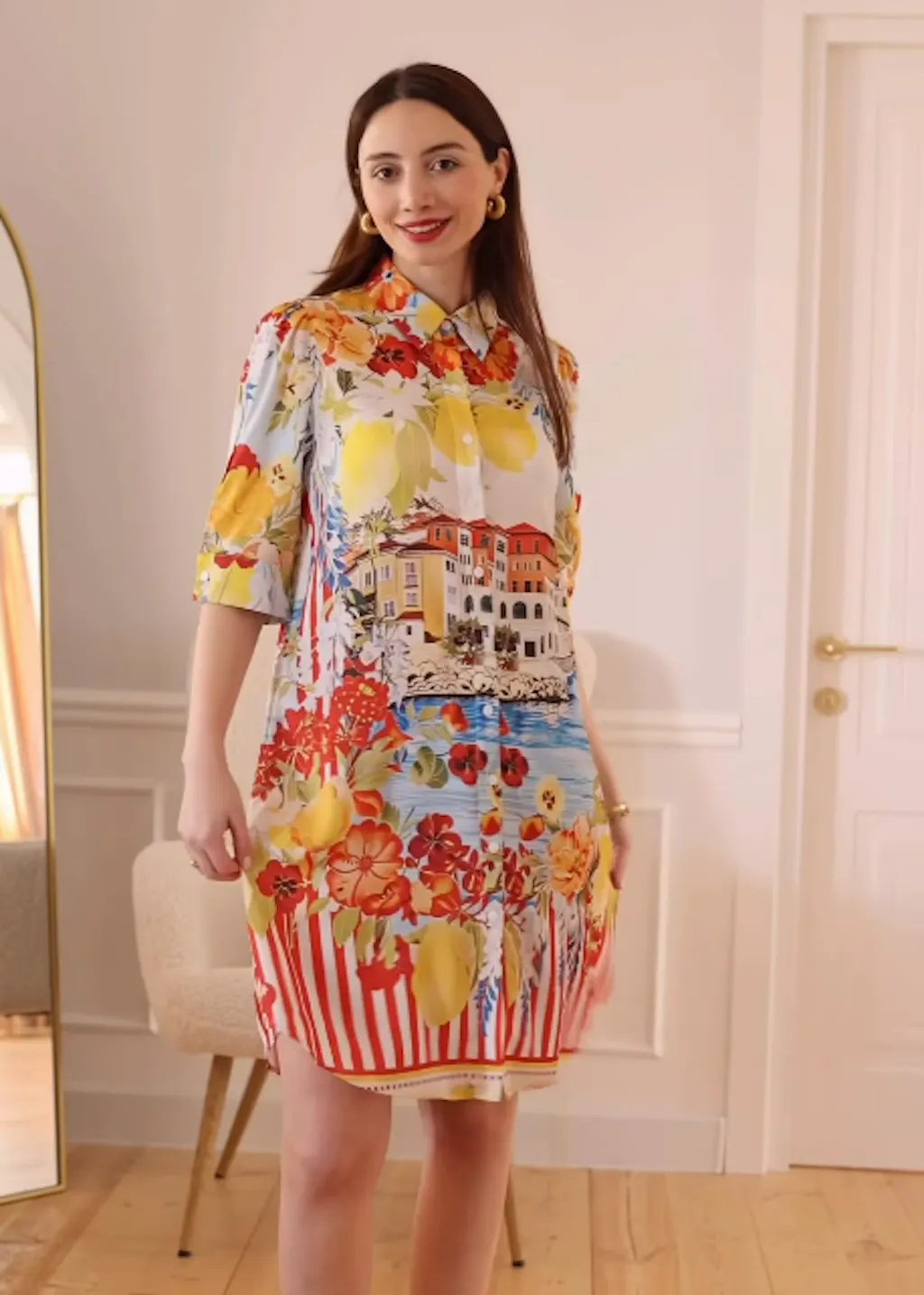 Holiday Citrus Garden Silky Satin Straight Shirt Dress
