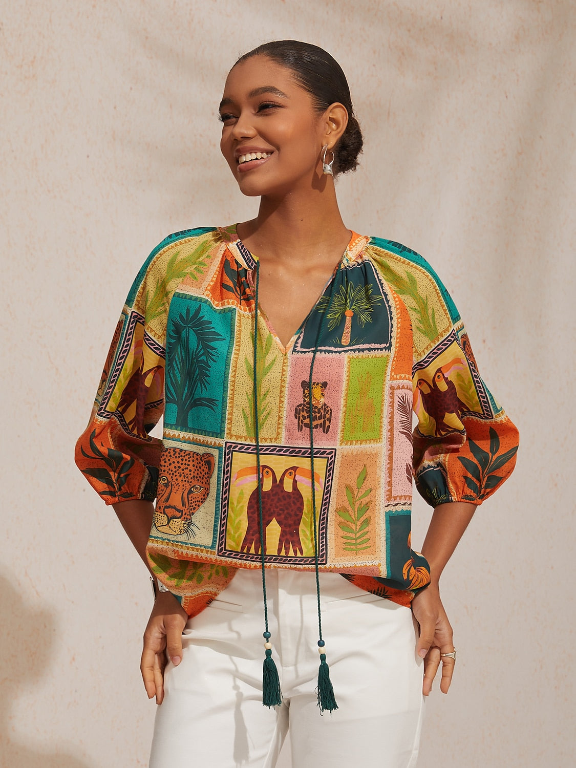 Vacation Tropical Element Floral Loose fit Chiffon Top