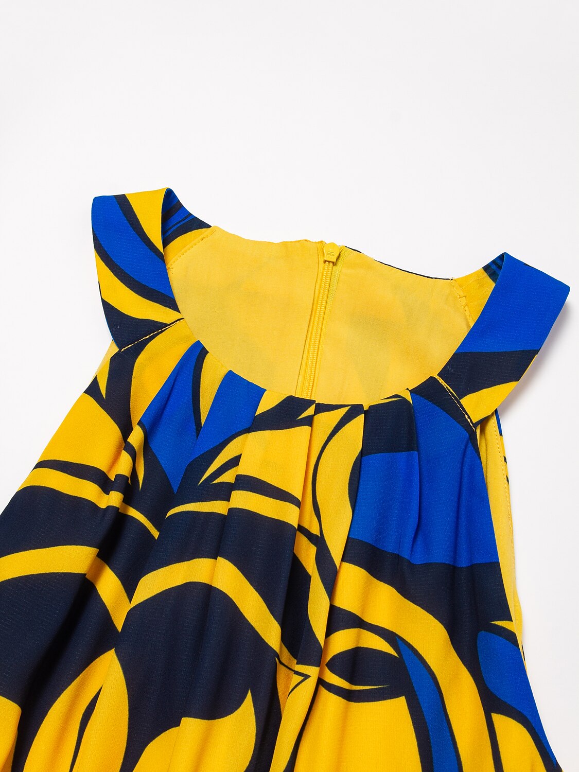 This sleeveless yellow midi dress is crafted from lightweight, breathable fabric with a flattering belted silhouette, featuring a vibrant floral print and elegant high neckline—perfect for spring gatherings, summer outings, or effortless daytime elegance.